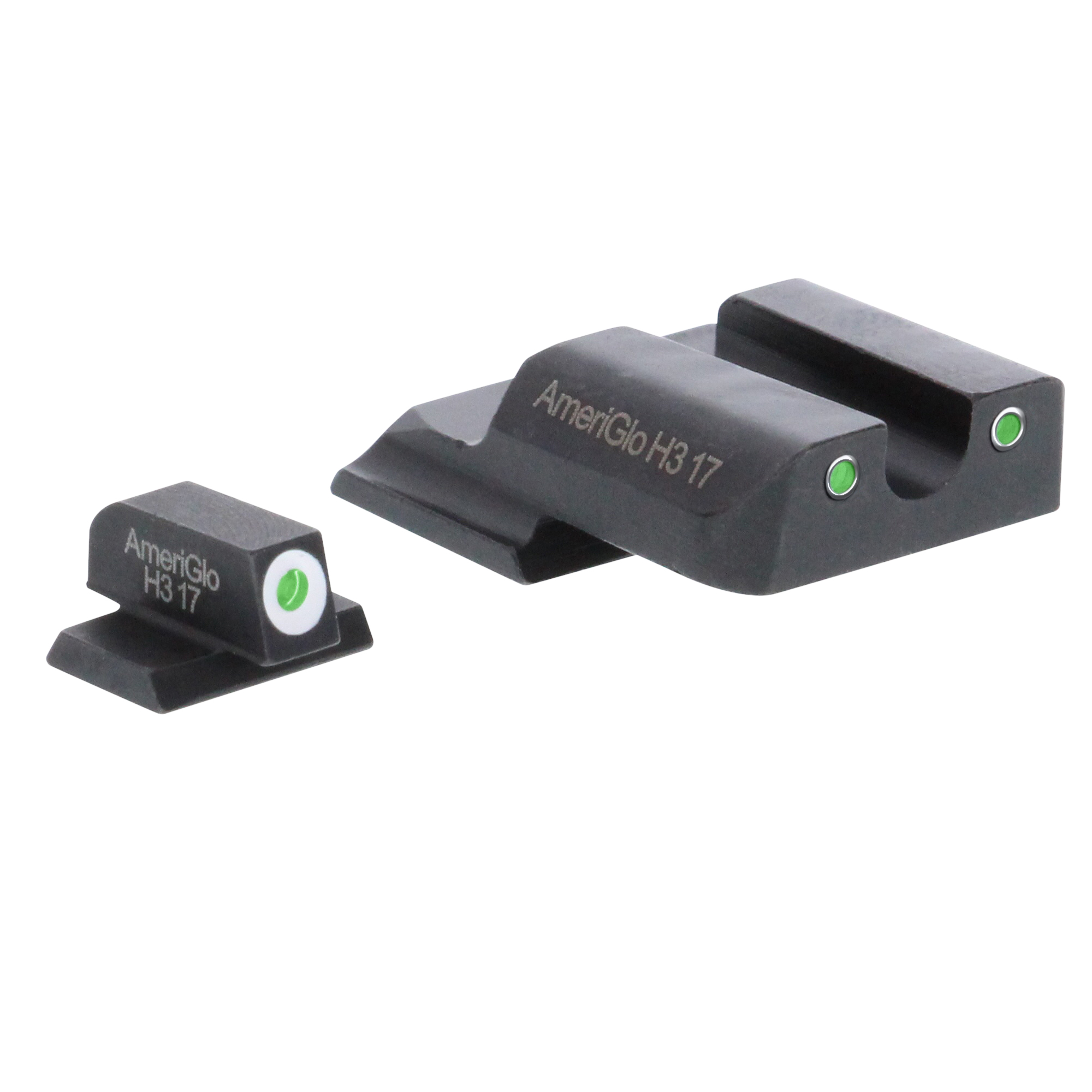 The original standard in self luminous night sights the Ameriglo Classic Style 3-Dot Night Sight Set for Select Glocks is the most popular among personal defense military and law enforcement. Featuring a horizontal alignment of green tritium dots inside a bright white outline.