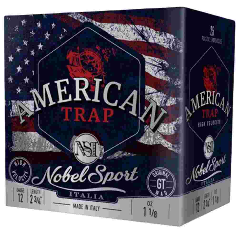 Nobel Sport Target American Trap Shotshells 12ga 2-3/4″ 1-1/8oz 1200fps #9 25/ct